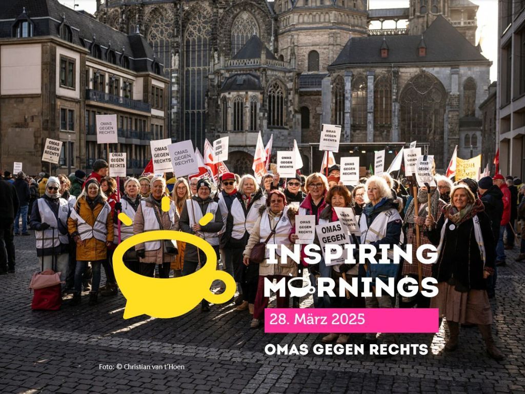 Nach dem medialen Wirbel, ausgelöst durch die kleine Anfrage der CDU/CSU im Bundestag, möchten wir von zwei Menschen, die sich in dieser mutigen parteiunabhängigen, zivilgesellschaftlichen Initiative „Omas Gegen Rechts“ engagieren, mehr erfahren. So erfahren wir von Ute Haupts und Ute Schneiders kurz etwas über die Entstehungsgeschichte und den Werdegang der „Omas Gegen Rechts“ insgesamt und speziell in Aachen. Warum sind die Beide aktiv und welchen grundlegenden Konsens haben sie in ihrer großen und stetig wachsenden Gruppe gefunden. Aber auch die aktuellen Entwicklungen kommen zur Sprache. Wie verhält es sich mit den vielen Missverständnissen und Falschaussagen über die „Omas Gegen Rechts“ als NGO tatsächlich? Und nicht zuletzt geht es im Inspiring Morning auch immer darum, uns zu inspirieren und zu ermutigen, unser vielfältiges Engagement für ein gutes Leben in diesem Land zu leben.