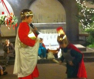 Die Aufführung ist Heiligabend 24. Dez. um 16:00h in der Familienchristmette in St. Foillan. Für die Familien der Spieler/innen sind bis 15:45 Plätze reserviert. Alle Spieler/innen sollten zwischen 15:30- 15:45 zum Umkleiden in die Sakristei (Raum vorne rechts in der Kirche) kommen und danach mit ihren Kostümen bis zum Beginn des Spiels bei ihren Familien sitzen.