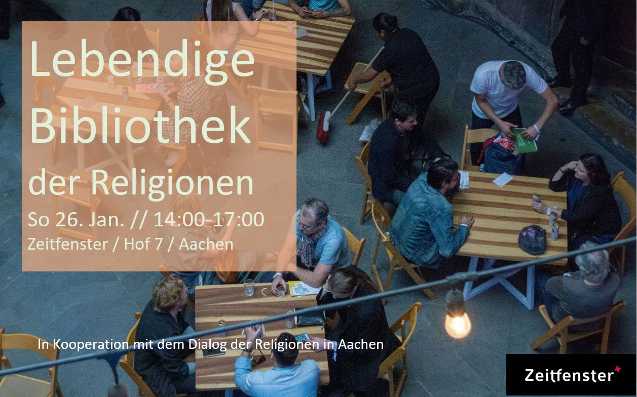 In der „Lebendigen Bibliothek“ werden Menschen zu „lebendigen Büchern“. Statt Büchern leiht ihr euch Menschen aus, die euch für 20 Minuten aus ihrem Leben und von ihrem religiösen/spirituellen Weg erzählen. Dazwischen ist Zeit zum Quatschen und Netzwerken bei Kaffee, Limo und Gebäck. Die Bibliothek ist geöffnet von 14:00-17:00 Uhr, schau gerne vorbei in dieser Zeit.