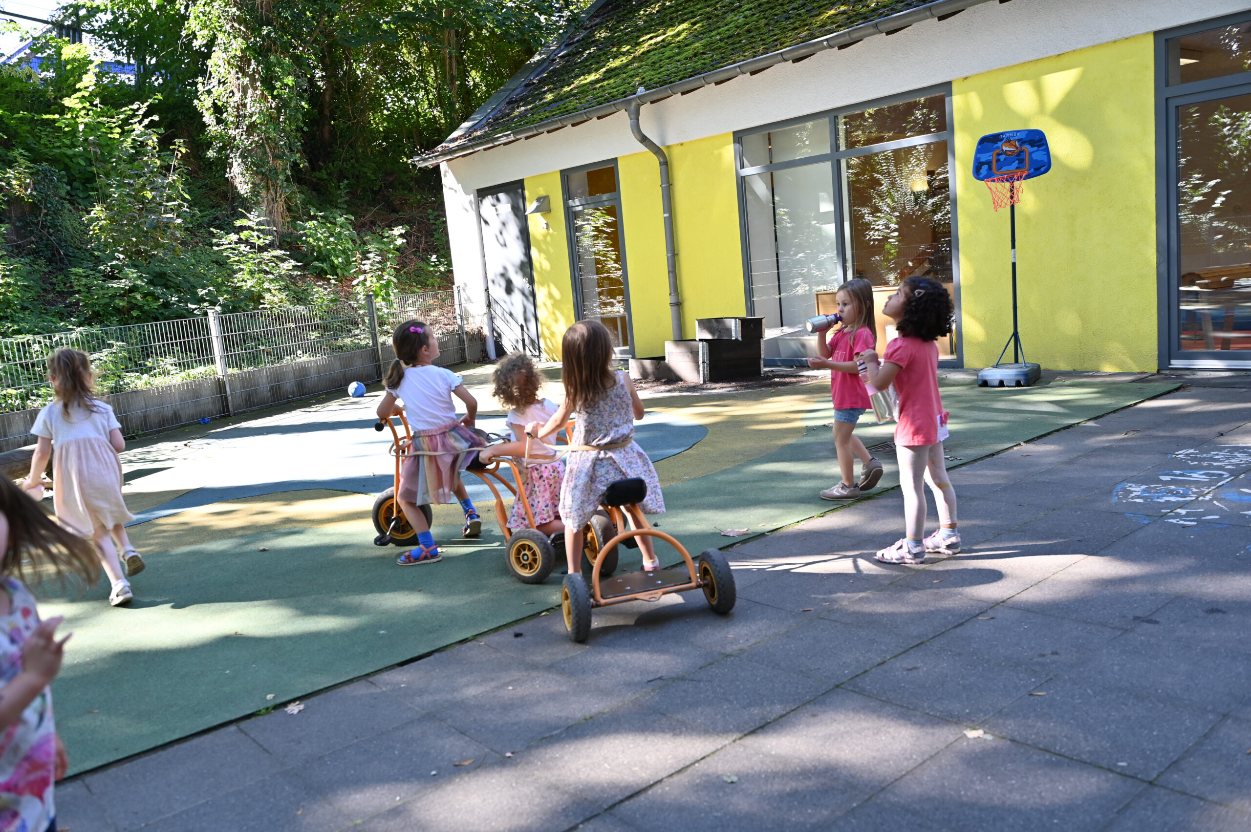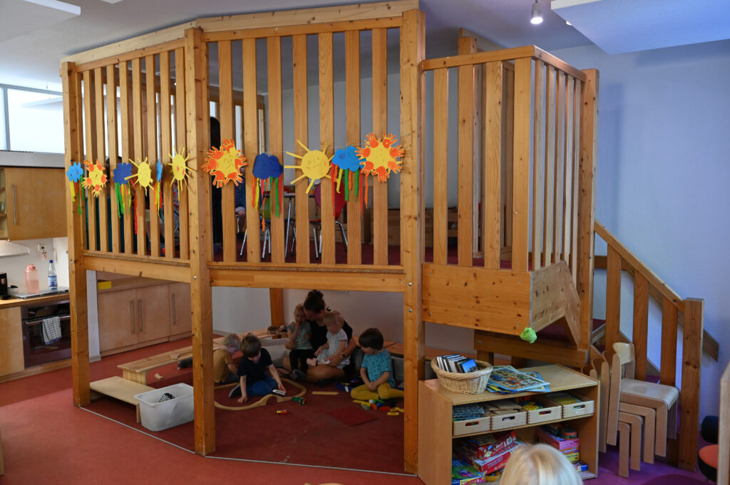 In unserer Einrichtung werden 40 Kinder im Alter von zwei bis sechs Jahren betreut. Die Kinder können in einem Betreuungsumfang von 35 oder 45 Wochenstunden die Einrichtung besuchen.