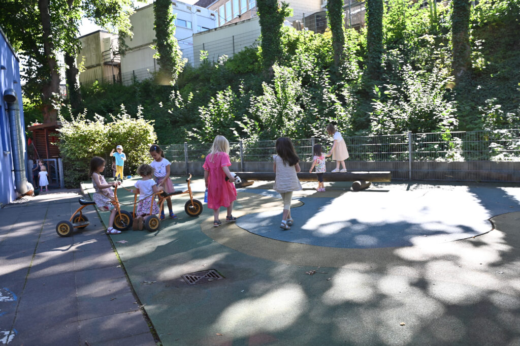 Unsere zweigruppige Einrichtung liegt in einem Wohnviertel, in unmittelbarer Nähe des Bahnhofs. Die Innenstadt, Spielplätze und die Parkanlage Hangeweiher sind fußläufig oder auch mit dem Bus gut erreichbar. Zur direkten Nachbarschaft gehört die Familienberatung des Caritas Verbandes.